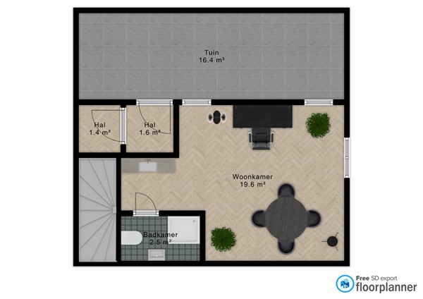 In de woonstudio (of 2e slaapkamer) op de begane grond ervaar je veel lichtinval door de grote ramen en tuindeur die toegang biedt tot het zonnige terras van maar liefst 17 m². De woonstudio beschikt over een extra drieblok keukenopstelling met wasbak en luxe kraan.